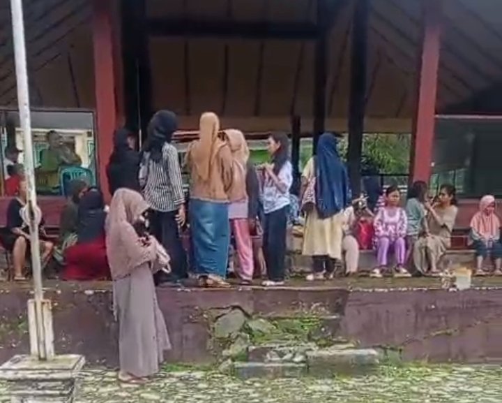 Suara teriakan dan tangisan warga yang panik terdengar keras, menggambarkan kekhawatiran mereka terhadap keselamatan diri dan keluarga. Warga terlihat berhamburan lari menyelamatkan diri dari pergerakan tanah yang dahsyat.