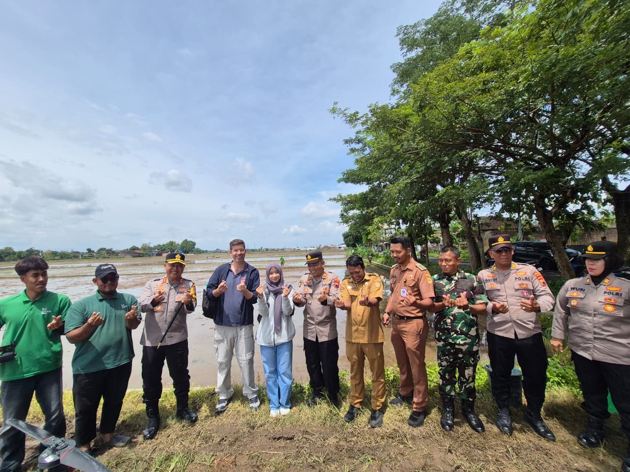 Metronusa News, Sukoharjo | Polres Sukoharjo bersama Dinas Pertanian dan Perikanan Kabupaten Sukoharjo serta investor asal Spanyol melaksanakan penanaman padi varietas Japonica Tarabas di area persawahan Dukuh Jati, Desa Mulur, Kecamatan Bendosari, Selasa (10/2/2026).