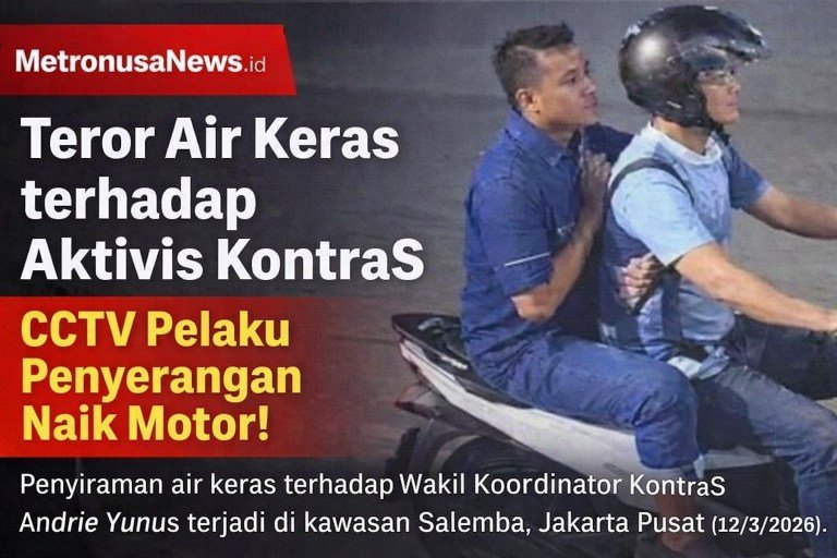 MetronusaNews.id | Jakarta — Serangan brutal terhadap Wakil Koordinator Eksternal Komisi untuk Orang Hilang dan Korban Tindak Kekerasan (KontraS), Andrie Yunus, mengguncang ruang demokrasi Indonesia. Aktivis hak asasi manusia tersebut menjadi korban penyiraman cairan diduga air keras oleh orang tak dikenal di kawasan Salemba, Jakarta Pusat, Kamis malam (12/3/2026).
