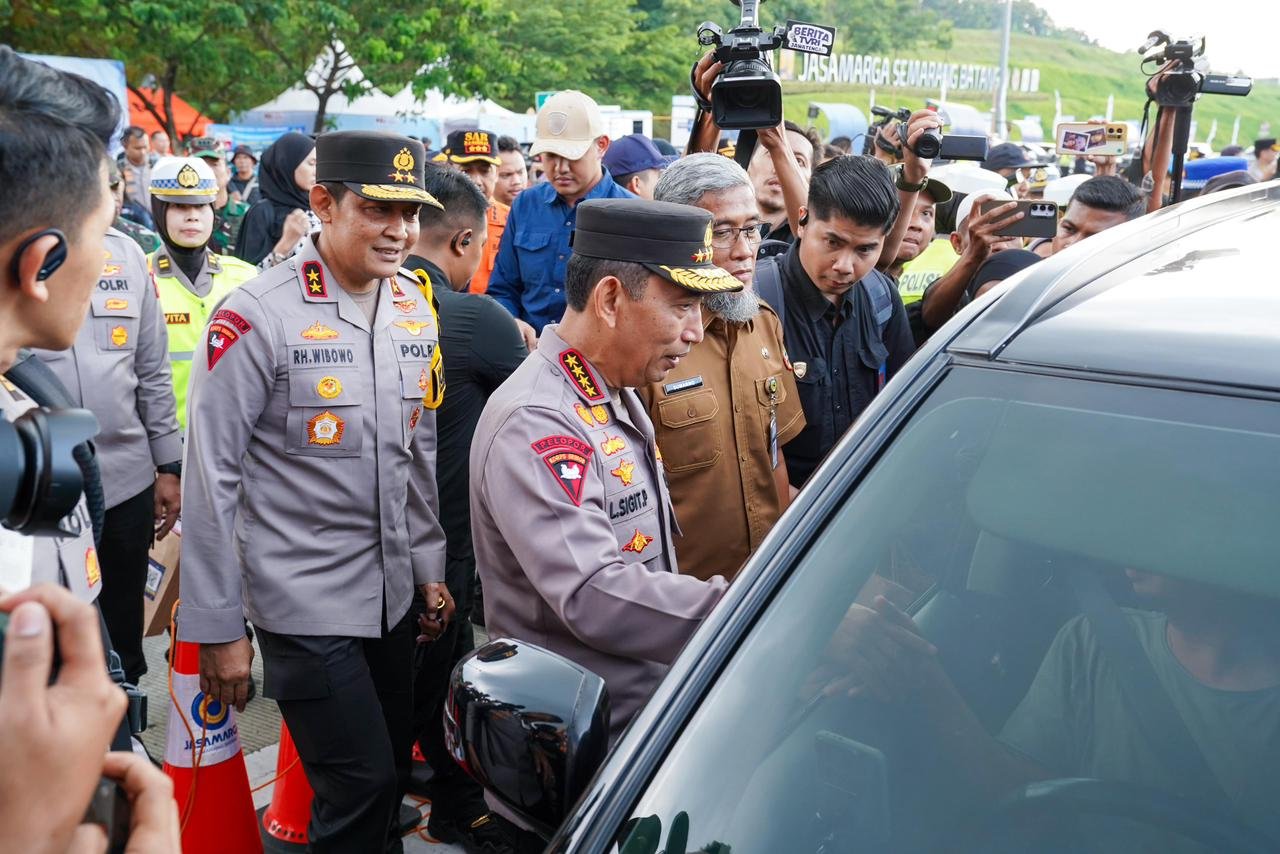 Dalam kesempatan tersebut, Kapolri juga menyempatkan diri menyapa para pemudik yang melintas di Gerbang Tol Kalikangkung. Suasana hangat terlihat saat Kapolri berbincang dengan sejumlah keluarga yang tengah melakukan perjalanan menuju kampung halaman.