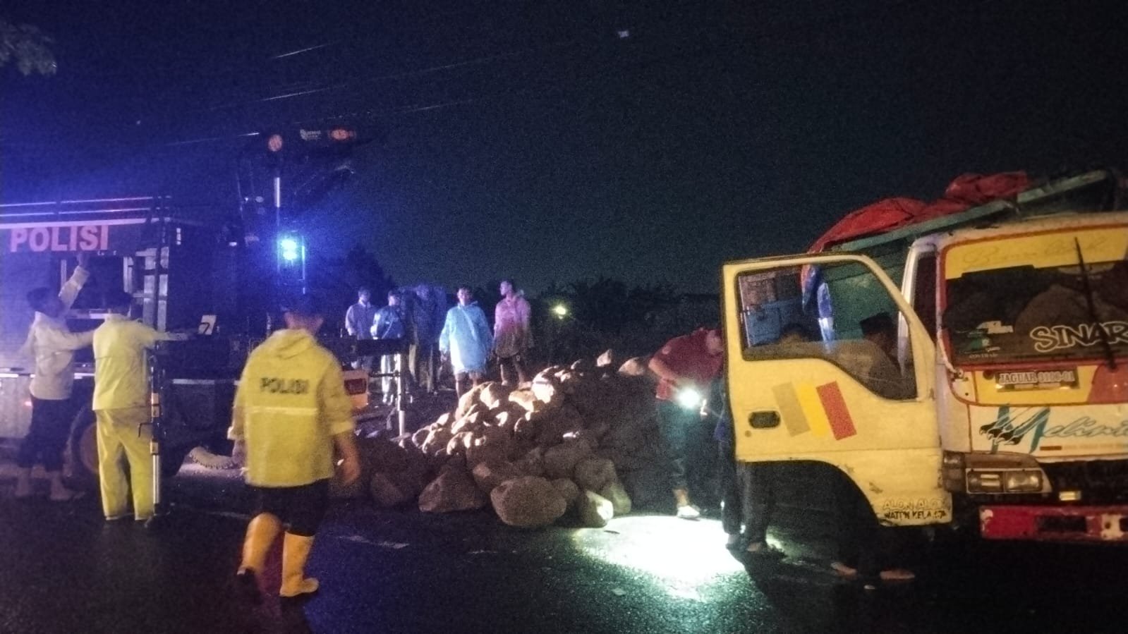 Melalui koordinasi petugas dan bantuan warga, proses pengangkatan badan truk serta pembersihan material batu dapat diselesaikan dengan cepat. Pada pukul 22.50 WIB, evakuasi dinyatakan selesai dan arus lalu lintas kembali normal.