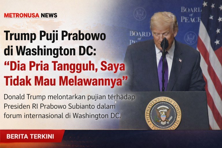 Metronusanews.id | WASHINGTON DC – Presiden Amerika Serikat (AS), Donald Trump, melontarkan pujian terbuka kepada Presiden Republik Indonesia, Prabowo Subianto, dalam sebuah forum internasional di Washington DC.