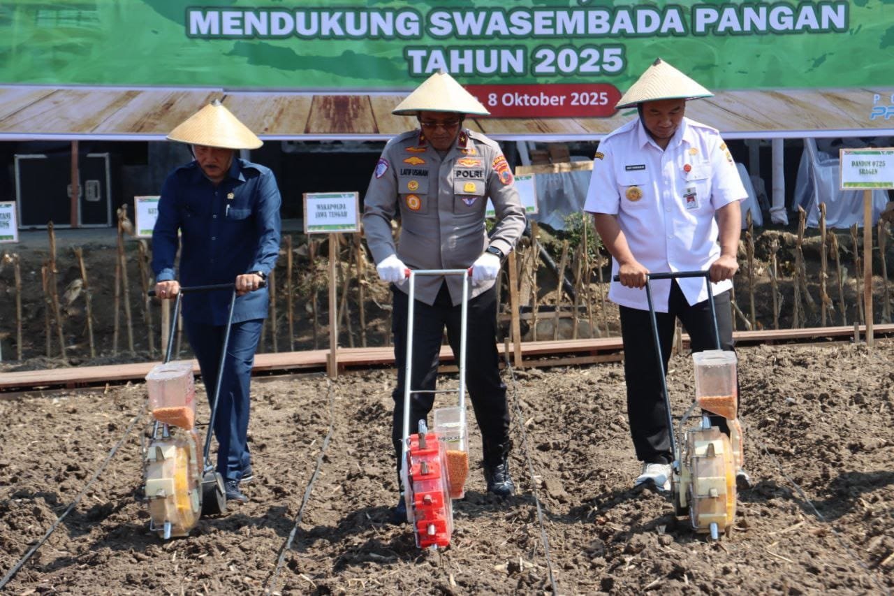 Dari lokasi penanaman benih jagung di Sragen, Bupati Sragen H. Sigit Pamungkas menuturkan bahwa kolaborasi antara Polri dan pemerintah daerah menjadi pendorong nyata kemajuan pertanian di wilayahnya.