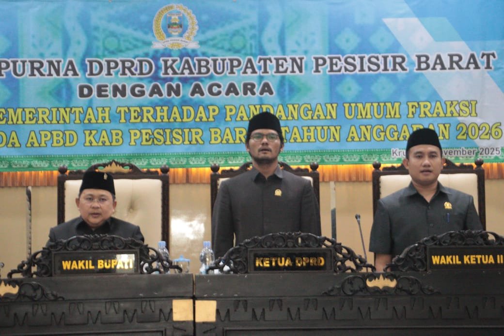 Metronusa News, Pesisir Barat | Wakil Bupati Pesisir Barat (Pesibar), Irawan Topani, S.H., M.Kn., menghadiri rapat paripurna Dewan Perwakilan Rakyat Daerah (DPRD) dengan agenda Jawaban Pemerintah atas Pandangan Umum Fraksi atas Rancangan Peraturan Daerah (Ranperda) APBD Kabupaten Pesisir Barat (Pesibar) Tahun Anggaran 2026, di ruang rapat paripurna DPRD Pesibar, Jumat (14/11/2025).