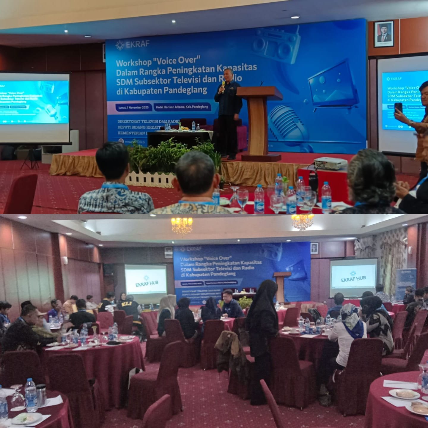 Metronusa News, Pandeglang | 7 November 2025 – Direktorat Televisi dan Radio Deputi Bidang Kreativitas Media Kementerian Pariwisata dan Ekonomi Kreatif/Badan Ekonomi Kreatif (Kemenparekraf/Bekraf) menggelar Workshop Voice Over dalam rangka peningkatan kapasitas sumber daya manusia (SDM) subsektor televisi dan radio di Kabupaten Pandeglang. Kegiatan ini berlangsung di Hotel Horison Altama Pandeglang, Jumat (7/11/2025).